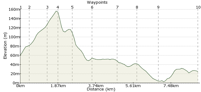 A leisurely walk (low hills and fells (below 600m)) starting and finishing in Isle of Anglesey, Wales, about 8.90km (5.53 mi) long with an estimated walking time of about 2:45h. It is unsuitable for families with children, prams & pushchairs, wheelchairs.