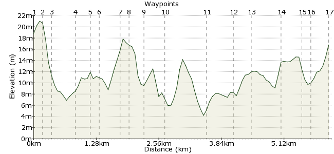 From the station, walk up the road and turn right. Walking downhill, you can see the sea over the buildings in front of you - the beach is at the bottom of the hill. The sea will now be on your right for most of the walk until Belhaven. Landmarks include harbours, the swimming pool, the Rocks Hotel, a golf course, and Belhaven Bay (first left after going under the railway), rugby/football pitchs (after coming though woods). There are signs for the station after coming back under the railway.